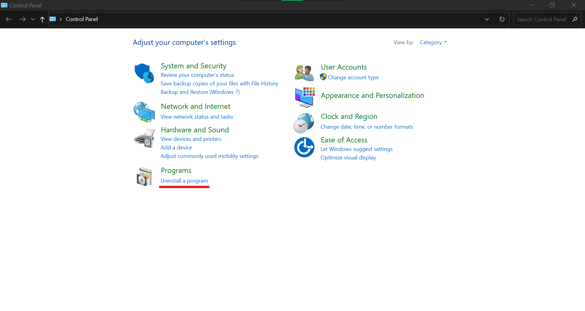 - Ilovani o'chirish uchun Windows operatsion tizimning "Панель управления" ("Control panel") boʻlimiga kiring va "Удаление программы" ("Uninstall a program") menyusini tanlang.
